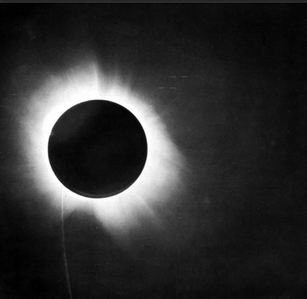 في عام 1915 نشر أينشتاين نظريته للنسبية العامة التي تنص على أن الضوء سوف ينحني حول الأجسام الضخمة لأن الفضاء نفسه يصبح منحني حول هذه الأجسام. وهناك فرصة لاختبار النظرية أُتيحت بعد عدة سنوات عندما حدث كسوف الشمس الكلي لتظلم السماء في 29 مايو 1919.