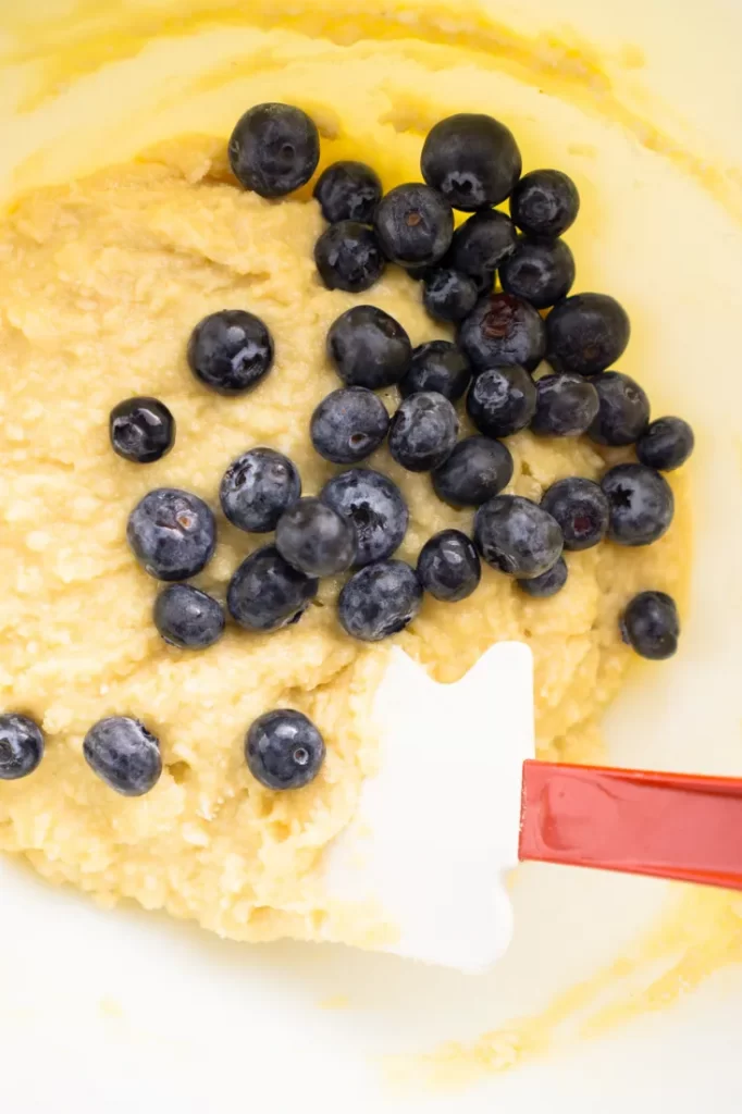 يشتهر التوت البري الأزرق بأنه ينفجر وينزف في الخليط أثناء مزجه. لذلك إليك نصيحة: قم بتجميد التوت الأزرق قبل استخدامه في الوصفة. ثم بعد ذلك يمكنك نثر حبات التوت البري المجمد في دقيق اللوز قبل خلطه لمساعدة العنب البري على البقاء في مكانه في خليط الكعك أثناء خبز المافن.